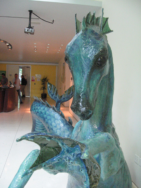 Sea horses… ride the waves into deep waters. Pulling chariots or dancing in sea foam, these horses have captivated our imaginations for thousands of years. One of the earliest Grecian relics was a seahorse. Hippo is Greek for “horse” and kampos means “sea monster”, and its the name I use for these majestic beasts.