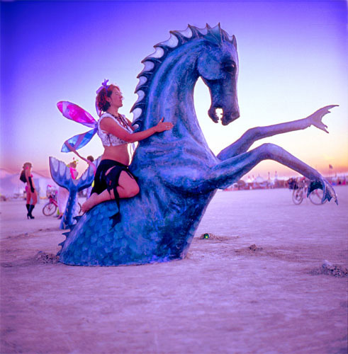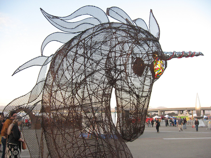 Hippocampus was first seen at Burning Man in 2002 and was a thematic piece for that year. It was my 3rd sculpture to put on the Playa. It also was put on display at Google HQ in Mt. View for a few years, at Burning Man Headquarters on 3rd street for a few years, and at Russian River Winery for a few years. This sea horse has been to quite a few festivals as well, including Treasure Island Music Festival, Decompression, and more.