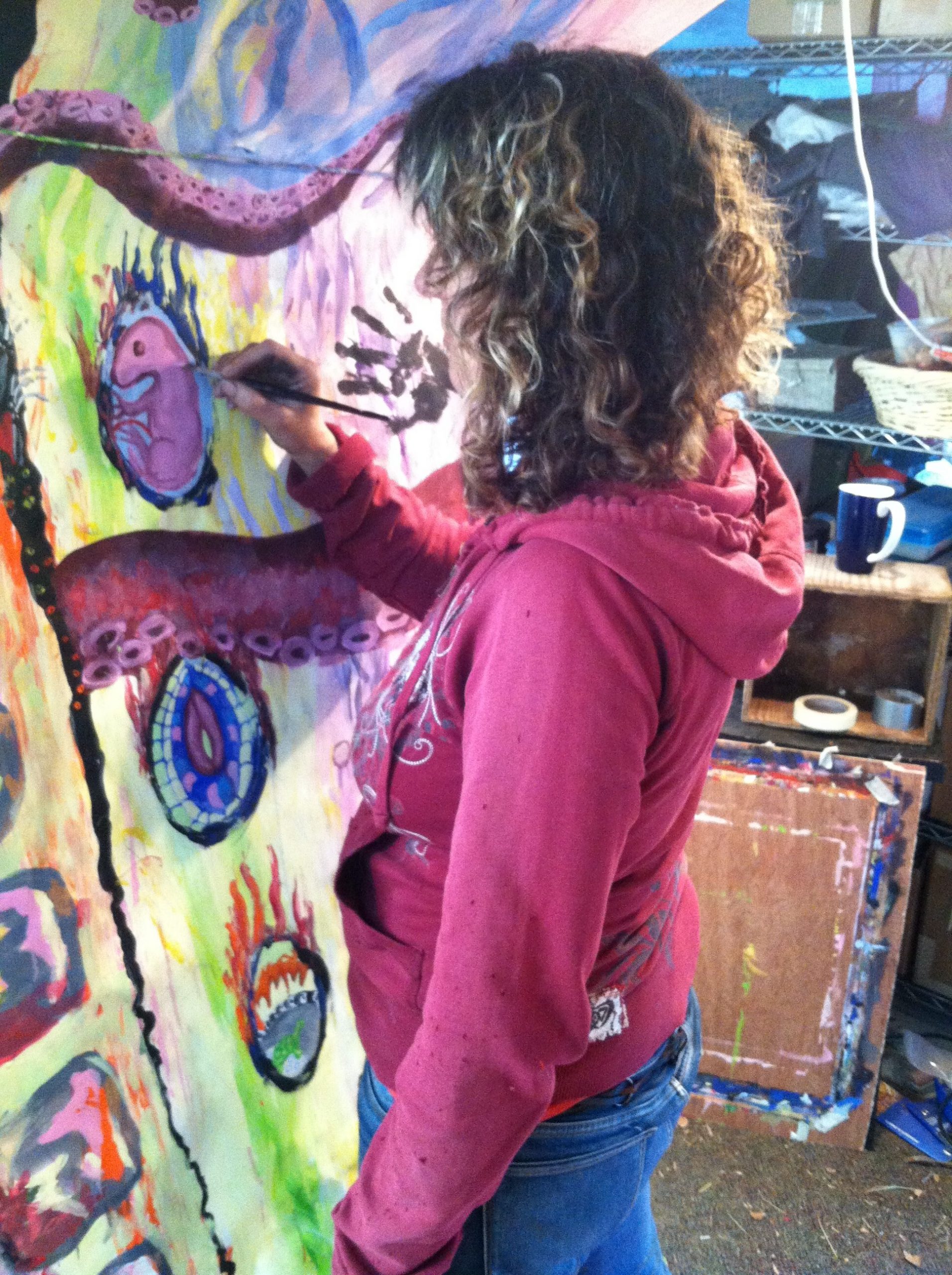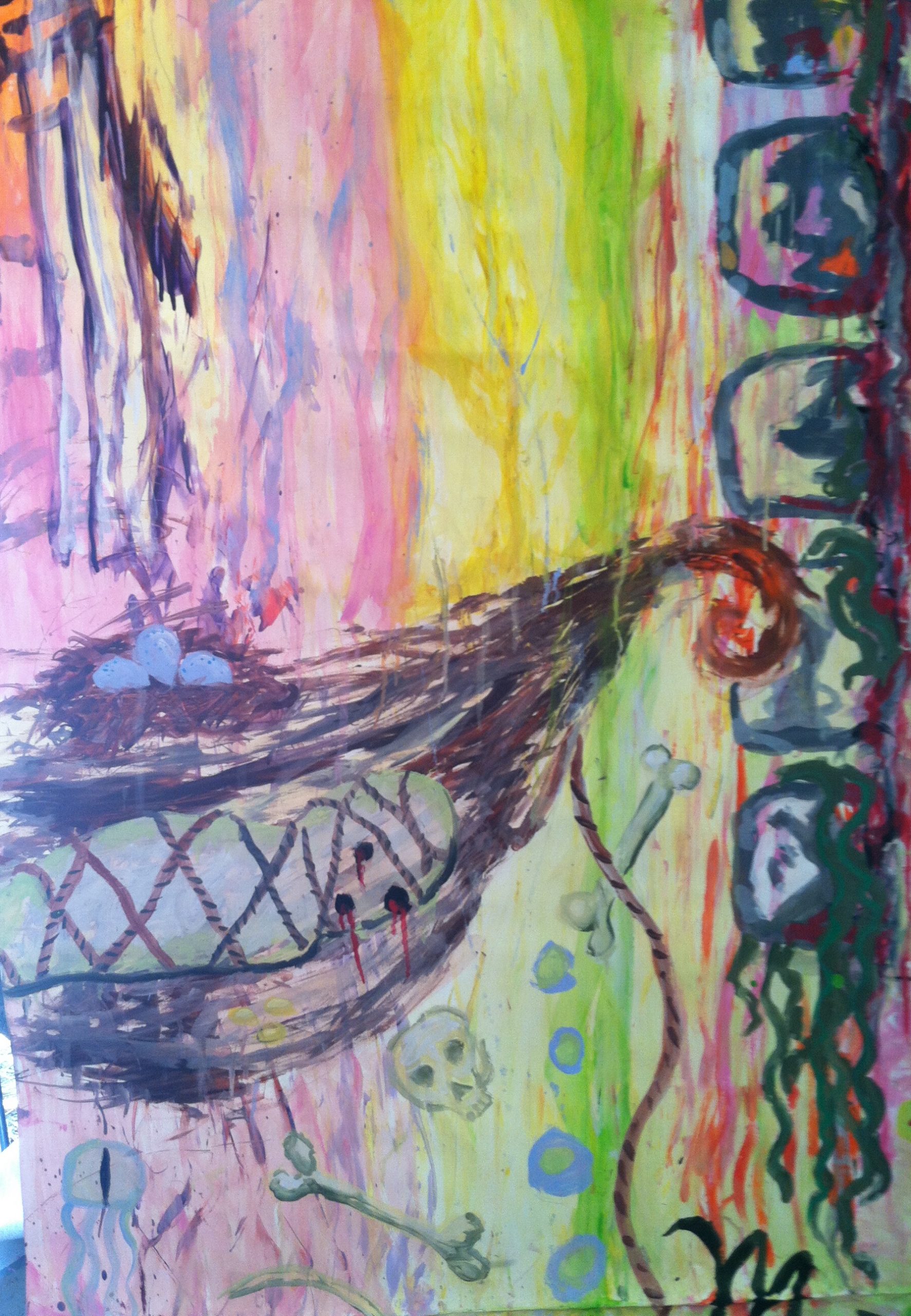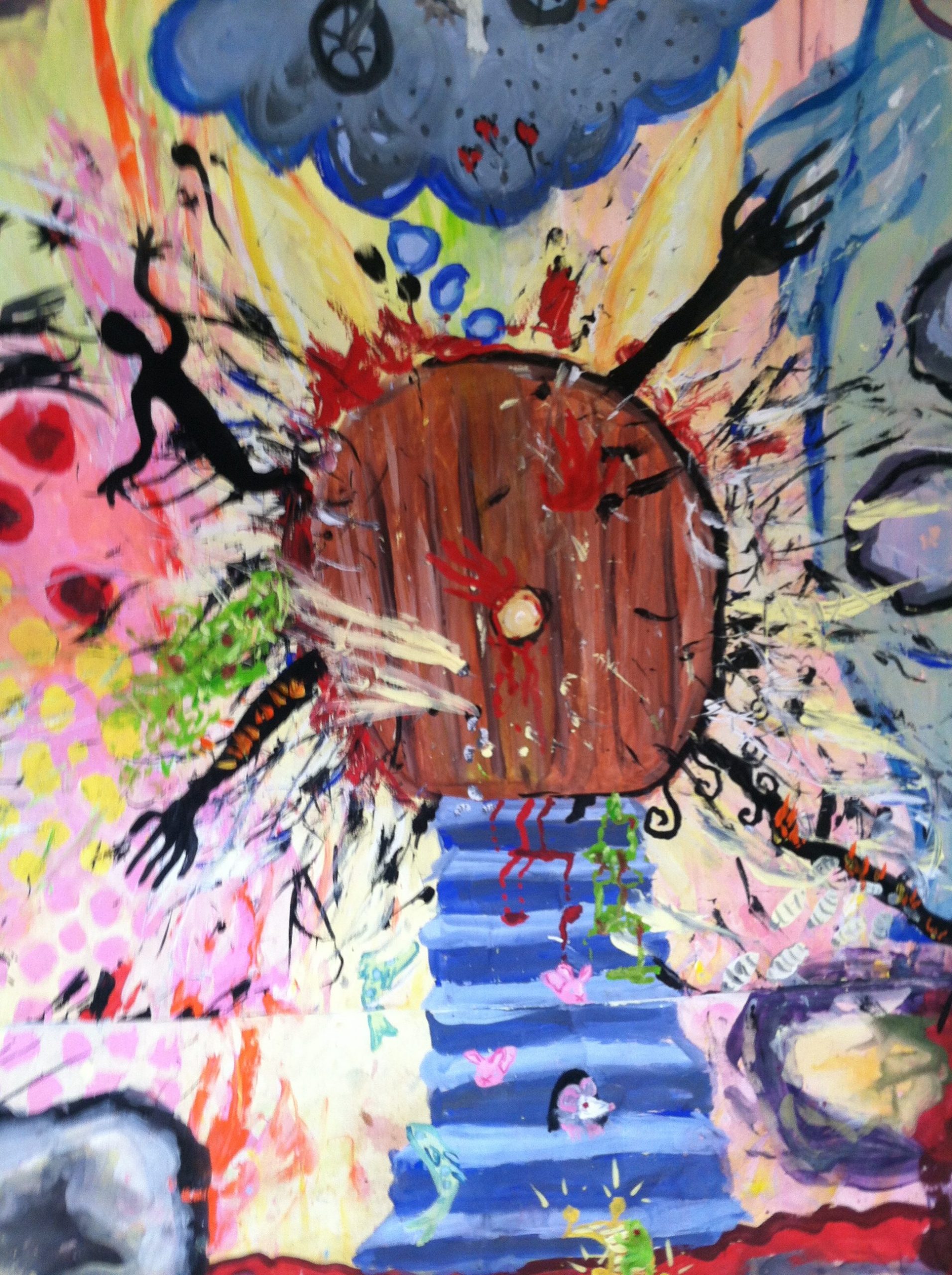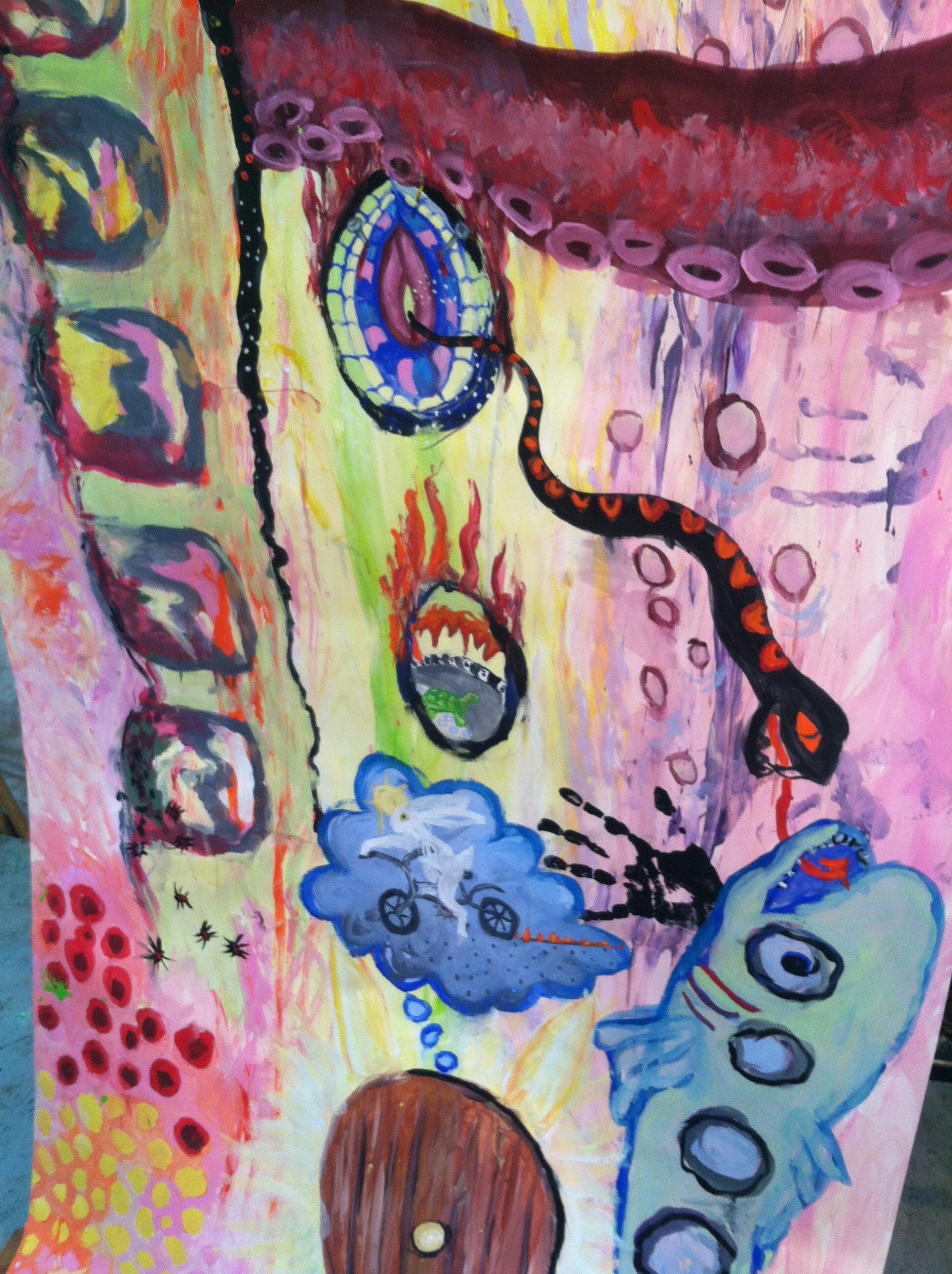 At the time of this Mid-Life Portal Painting, big decisions had begun to percolate to the surface, choices around my career paths, with options before me. At the conclusion of this painting (approximately one month) I had made a major life decision, to enter grad school for a PhD in Clinical Psychology, with a focus on somatic and creative work! My intention is to continue this thread of healing through creativity and expand my ability to teach others in institutional settings.